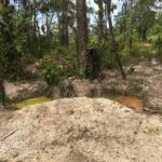 La explotación más fuerte se está dando en un área de al menos 200 hectáreas alrededor de lo que se conoce como “El Pantanal”, sector suamposo que se puede considerar como un humedal, donde existen huellas de una explotación completamente desordenada, con severos daños al suelo, tanto externos como internos. (Ver fotos). Las dos primeras fotos son durante la explotación durante el periodo seco, pero es importante observar la manera rustica como trabajan.