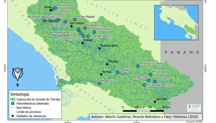 Mapa de resistencias comunitarias ante la expansión hidroeléctrica. Fuente: CIEP, UCR
